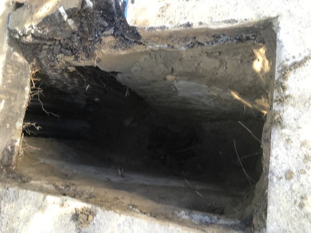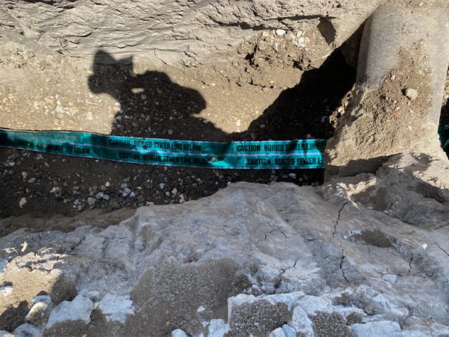 Here is just one example of when traditional sewer repair is the appropriate solution. Only a short section of corroded sewer line, buried under a slab, needed replacement. We identified the problem with sewer camera inspection and finished the job to the end, including repaving.